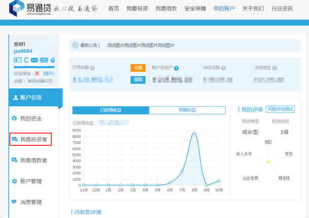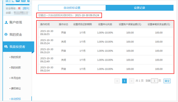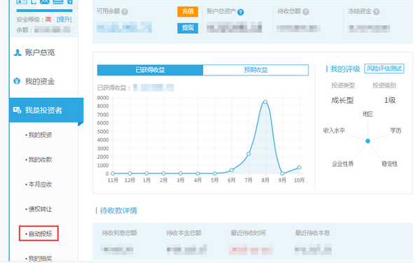 (2)点击左边菜单【我是投资者】下的【自动投标】