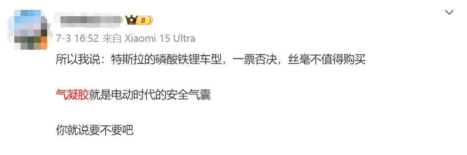 有人说,气凝胶就是电池的安全气囊,凡是不带气凝胶的电车(比如特斯拉、比亚迪的一些车型),都一票否决,完全不值得买。