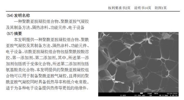 在前几天,比亚迪就公布了一个关于 “ 聚酰亚胺气凝胶 ” 的专利(CN120818239A)。