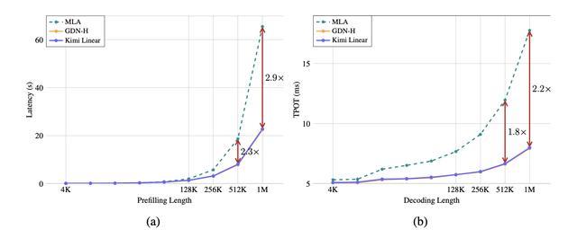 Kimi Linear与MLA、GDN-H在效率方面的比较
