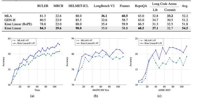Kimi Linear与MLA、GDN-H在长上下文基准测试中的比较