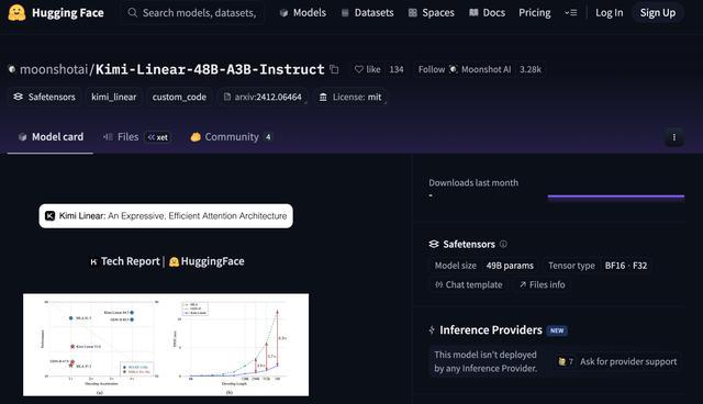 Kimi Linear的Hugging Face开源主页