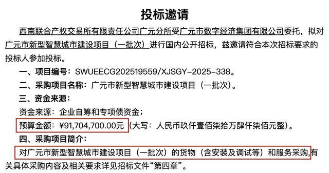 今年9月,该项目发布招标公告,招标人为广元市数字经济集团有限公司,所属广元发展集团,成立于2022年7月14日。