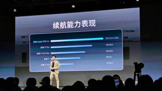 虽然机身厚度更薄,但联想并未牺牲手机其他方面的体验,比如续航方面,其搭载了一块4800mAh电池,据称是轻薄手机中电池容量最大的。这块电池的能量密度达到了860Wh/L,实测续航超过18小时,苹果17 Pro Max为10小时19分钟。