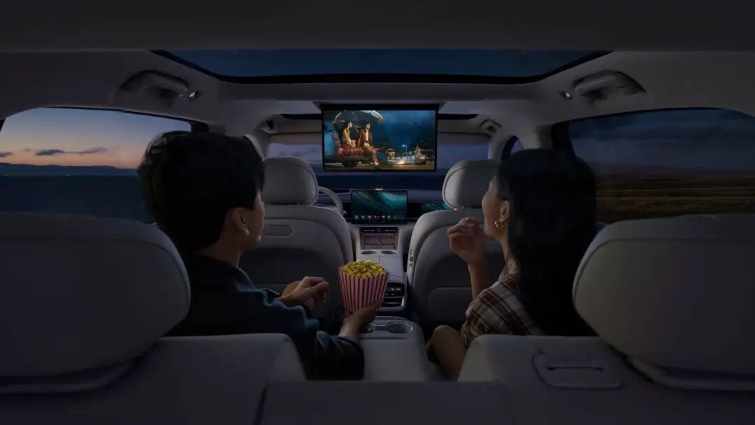 内饰上,新款 M7 的豪华感和科技感得到了加强,中控屏尺寸更大,边框更窄,新增的 17.3 英寸后排娱乐屏也回应了不少家庭用户的呼声。