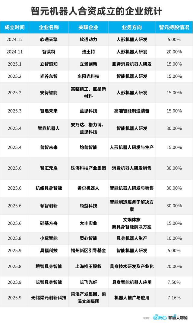 此外,智元还通过合资设立至少17家新公司,借力上市公司或地方产业集团,切入产能、渠道与场景。