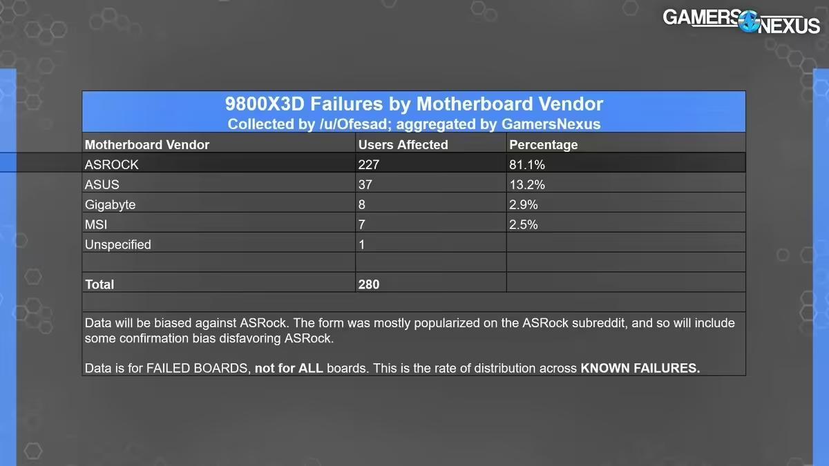科技媒体 Gamers Nexus 的统计数据显示,在同类故障报告中,超过 80% 的案例都与华擎主板有关,这清晰地将问题焦点指向了该品牌。