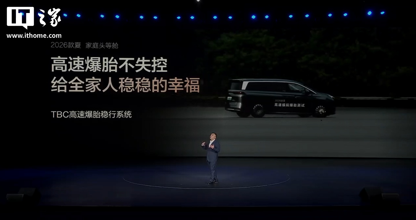 比亚迪 2026 款夏 MPV 尺寸为 5145×1970×1805mm、轴距为 3045mm,支持 10+ 项主动安全辅助系统。值得一提的是,新车还拥有 TBC 高速爆胎稳行系统,支持高速爆胎不失控特性,通过了 140km/h 高速模拟爆胎测试。