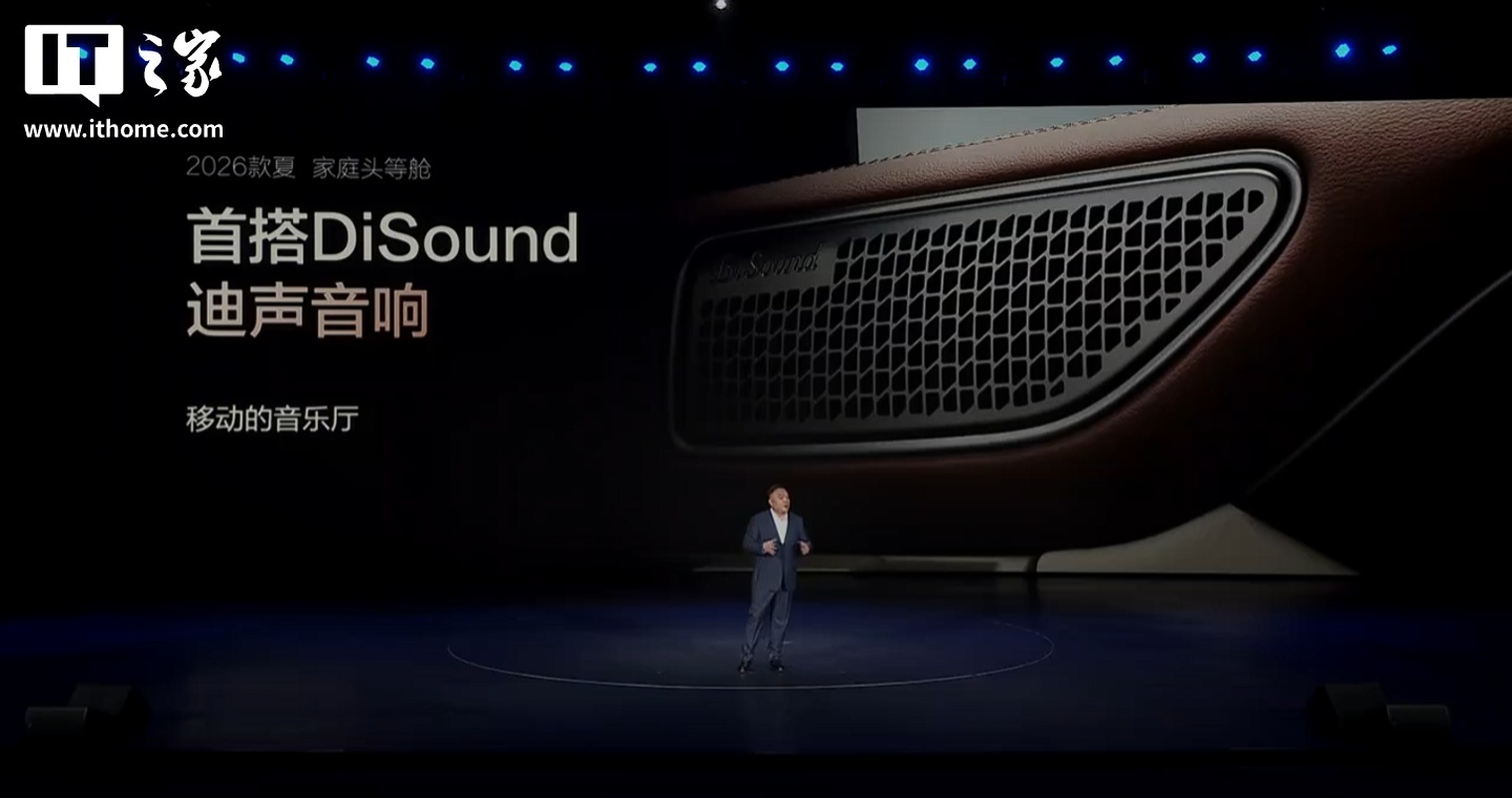 比亚迪 2026 款夏 MPV 还支持 AR 互动,可实现 AR 投影开门;搭载一体式智能冷暖冰箱(压缩机冰箱),容积 7.2L;首搭 DiSound 迪声音响,配备 28 扬声器;首搭全栈自研的魔方全景声,支持多维视听特性,同时第三排音响可以便携拆卸(两台夏的音响可以串联组成立体声)。