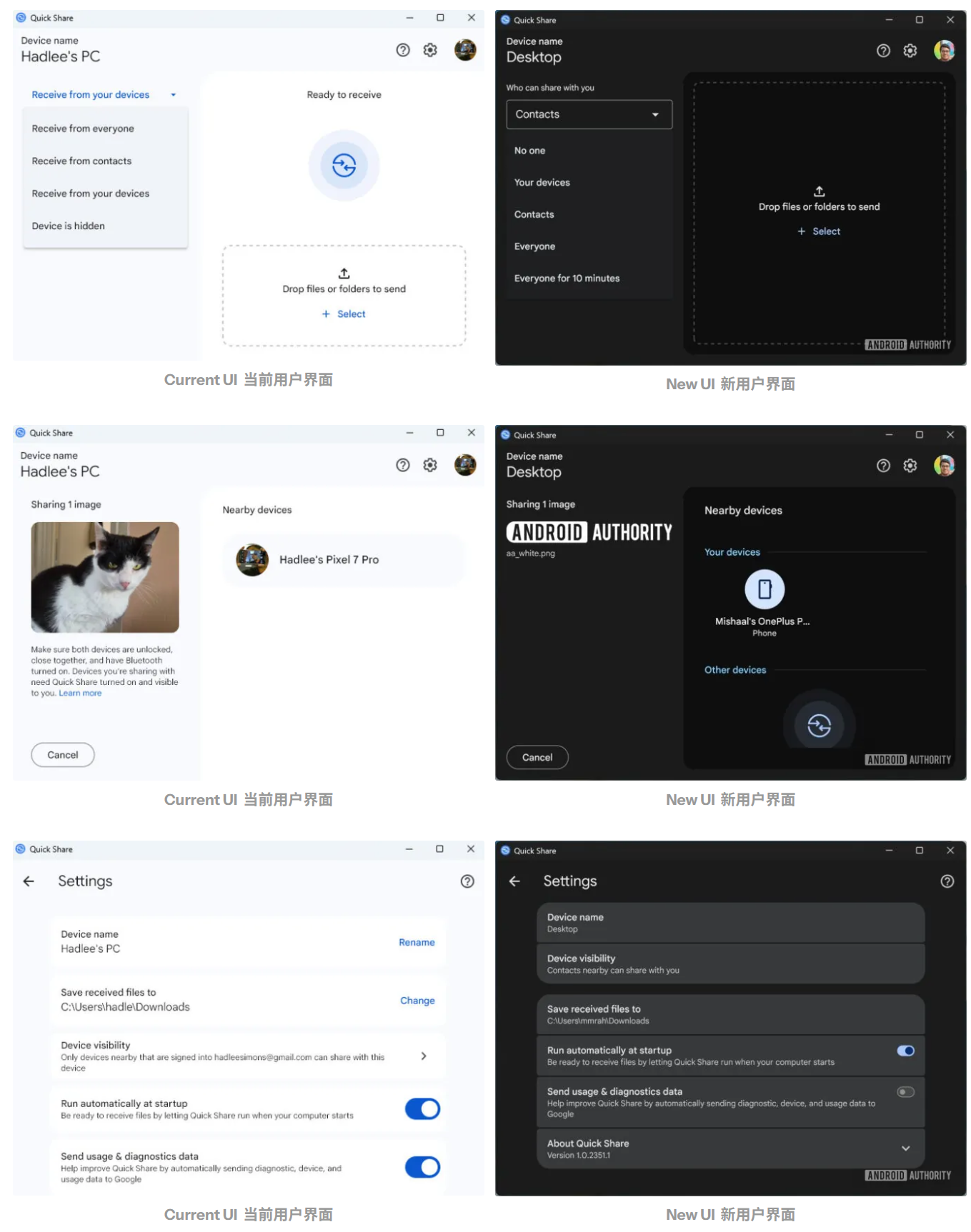 此次界面更新伴随 Windows 版快速分享的 1.0.2351.1 版本一同分发。不过,谷歌似乎采取了分阶段推送的策略。这意味着,即使用户已经将应用升级到最新版本,也可能暂时无法看到新的界面,需要耐心等待后续的服务器端推送。