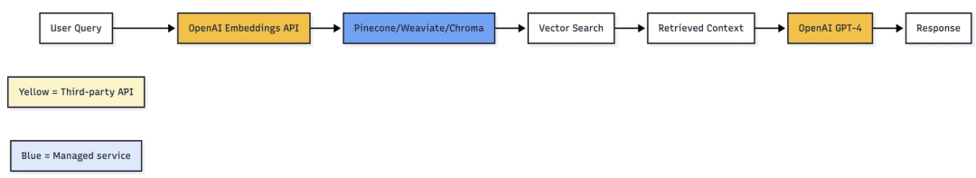 向量存储用的是 Pinecone 或 Weaviate(而不是“我们的专有向量数据库”);