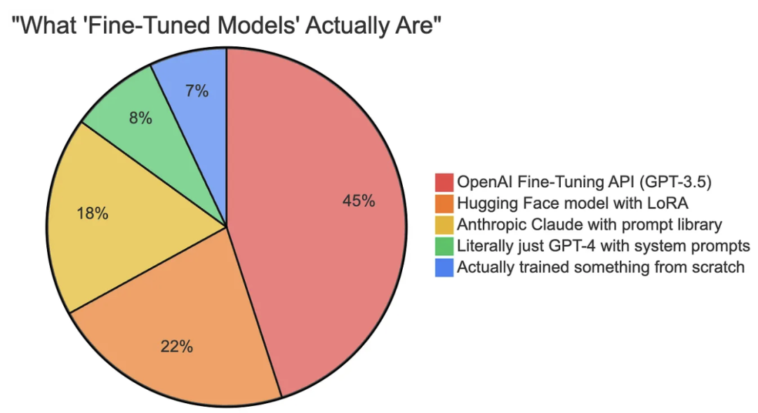 真正从零训练模型的公司只占 7%。敬佩!他们的基础设施我都看到了: