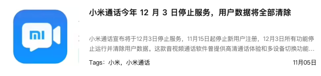 最近小米通话发布了个公告,表示将于 2025年12月3日停止服务。