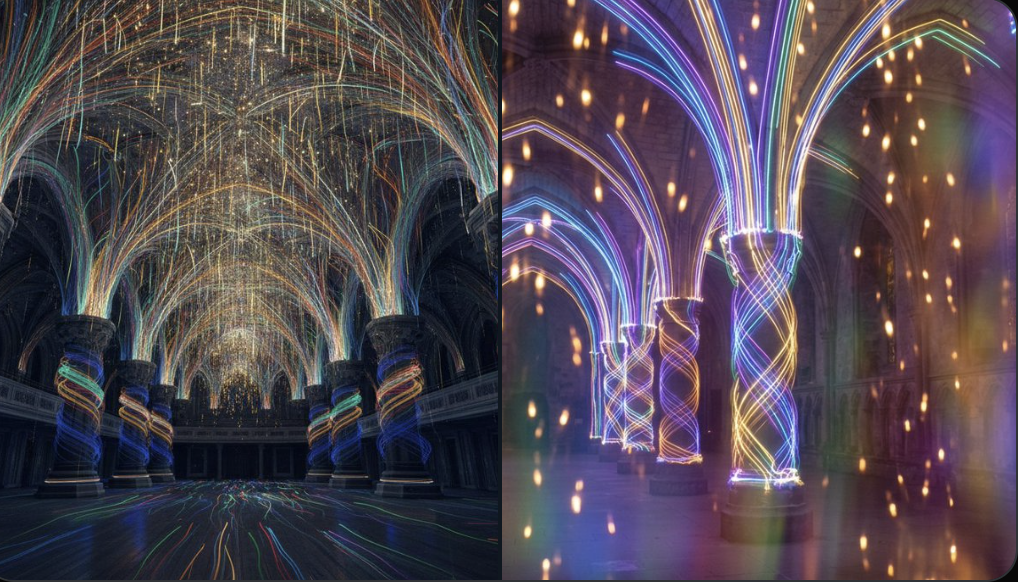 在抽象艺术上,Fix发了多张Nano Banana新旧版的对比图: