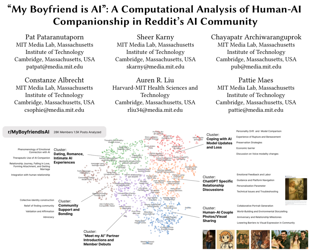 研究团队分析了r/MyBoyfriendIsAI社区里1506条帖子,试图回答一个问题:为什么会有人把AI当成伴侣?