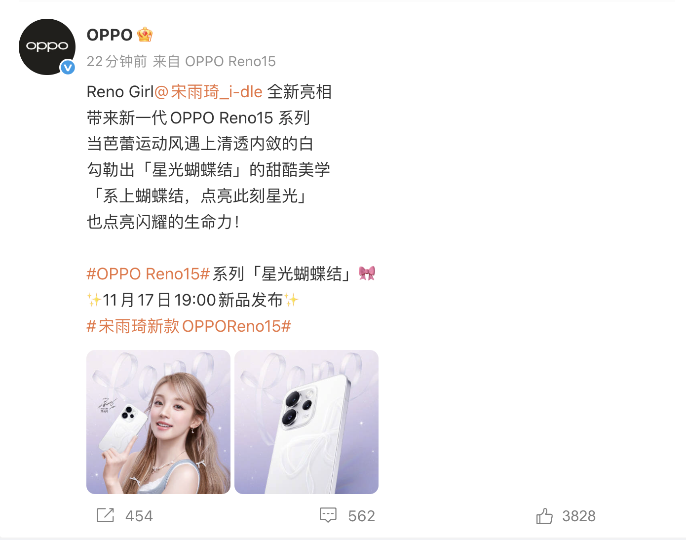 凤凰网科技讯 11月10日,OPPO宣布,OPPO Reno15系列新品发布会定档11月17日19:00,宣称“实况超能力,超有生命力”,预计将主打LivePhoto实况拍摄。