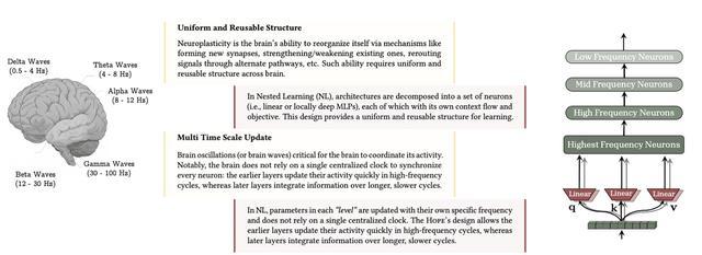 该范式认为,一个复杂的机器学习模型,其本质是一系列相互嵌套或并行的优化问题,每个问题都有自己独立的“上下文流”和更新速率。这一视角揭示了一个全新的设计维度,允许研究人员构建计算深度更深的 AI 组件,从而有效缓解灾难性遗忘问题。