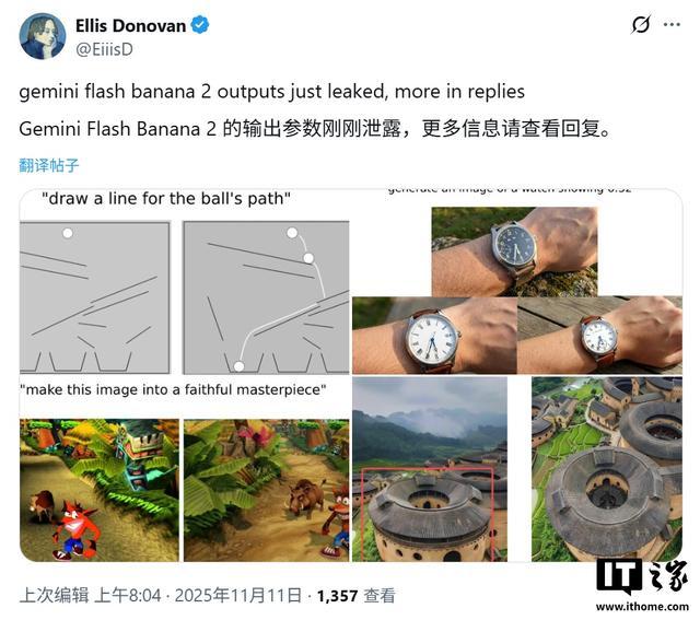 IT之家 11 月 11 日消息,科技媒体 testingcatalog 昨日(11 月 10 日)发布博文,报道称谷歌新一代 AI 图像模型 Nano Banana 2 的早期预览样本意外泄露,展示了其强大的图像生成与编辑能力。