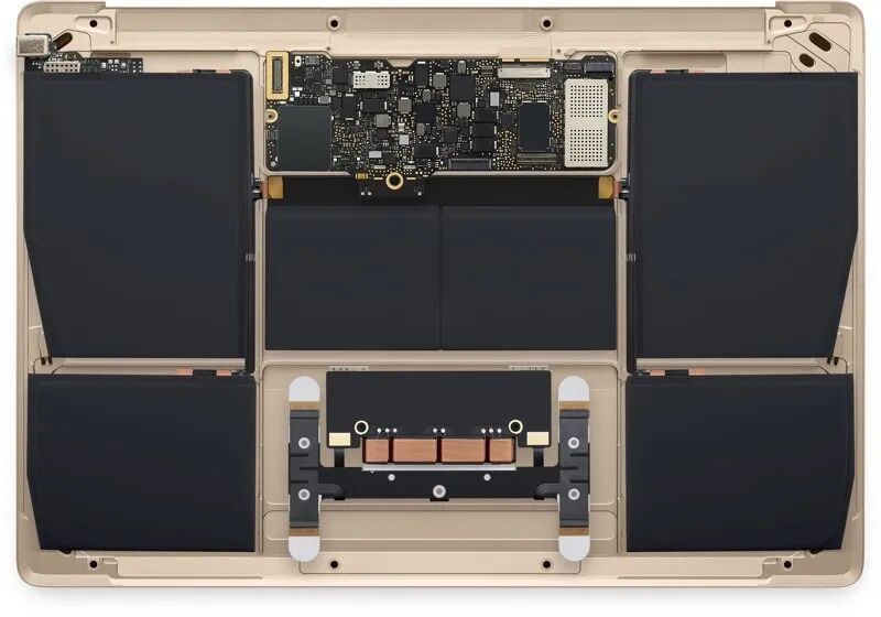 同样的情况也出现在 2015 年的 12 寸 Retina MacBook 上。从工业设计的角度来看,这台 A4 纸大小的全金属机身小笔记本可以说是 MacBook 有史以来最惊艳的一代,内部工艺更是货真价实的「tech porn」:
