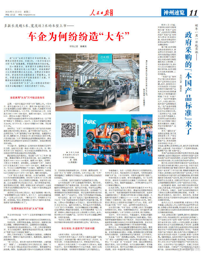 市场数据显示,2024年C级SUV销量同比增长26.5%,今年8月单月销量达8.7万辆,同比增长超过五成。业内将“大车”定义为满足“5326”参数特征——即车长超5米、轴距超3米、车宽超2米、座位数超6座,并强调其在扩展生活场景与提升出行品质方面的作用。
