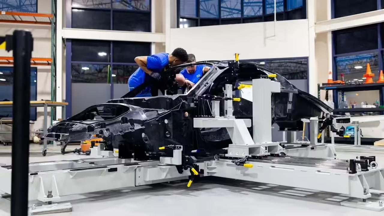目前尚不清楚最终量产线的具体形态,但就现阶段而言,验证线围绕一套大型高精度装配工装展开。该工装可确保工人高效、精准地完成底盘与车身的合装作业,并保障各车辆在外观与结构上高度一致。若装配过程中出现偏差,工程师与设计师可及时追溯问题根源,并在量产车辆正式投产前予以修正。