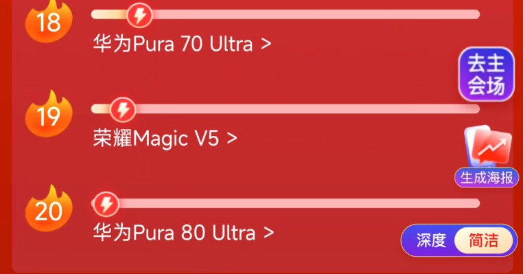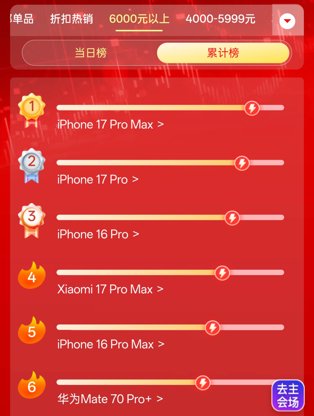 像是 Mate70 Pro+ 和 Mate X6,也可以排进 6000 元以上价位的前十。