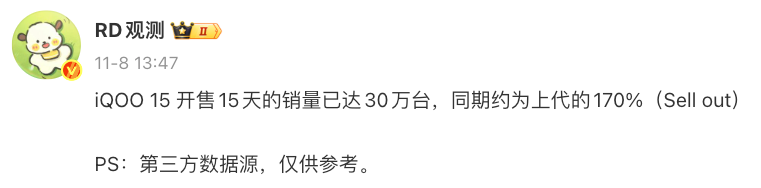 阿蓝的 iQOO 15,今年也成了一匹销量黑马。