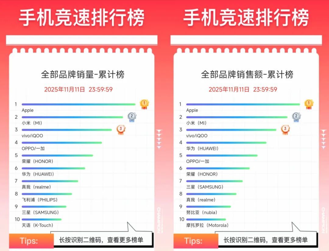 至于要问,这次双 11 到底哪家的手机卖得最狠,具体又有哪些机型是真的卖爆了。