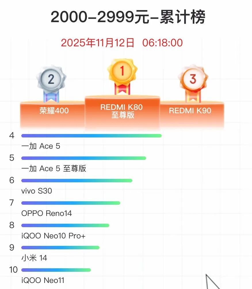 你们猜怎么着?荣耀400 排第二,仅次于 “ 神机 ” 红米 K80 至尊版!