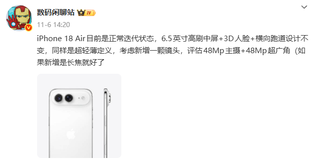 因为下一代 iPhone Air 据目前爆料来看,还真就长这样:
