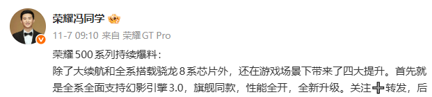 只知道荣耀500 标准版正面将采用 6.5 英寸 1.5K 中屏,然后全系搭载骁龙 8 系芯片!