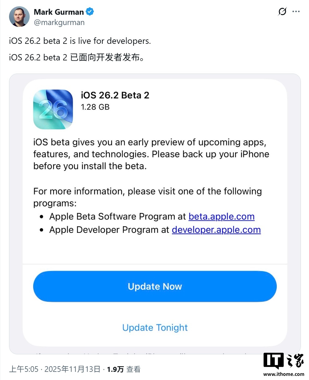 IT之家 11 月 13 日消息,科技媒体 9to5Mac 今天(11 月 12 日)发布博文,汇总盘点了苹果 iOS 26.2 Beta 2 更新内容,此次更新主要为“测距仪”和“水平仪”等原生应用整合液态玻璃设计语言,并调整了部分系统动画,让其更具“弹性”。