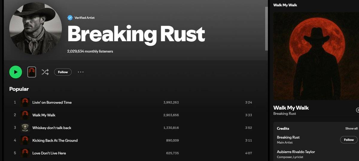 榜一《Walk My Walk》是 AI 生成的歌曲作品你,从数据来看,它不仅登顶了,还连续在榜了三周。对于任何一个新人来说,都是堪称「爆」了的成绩。