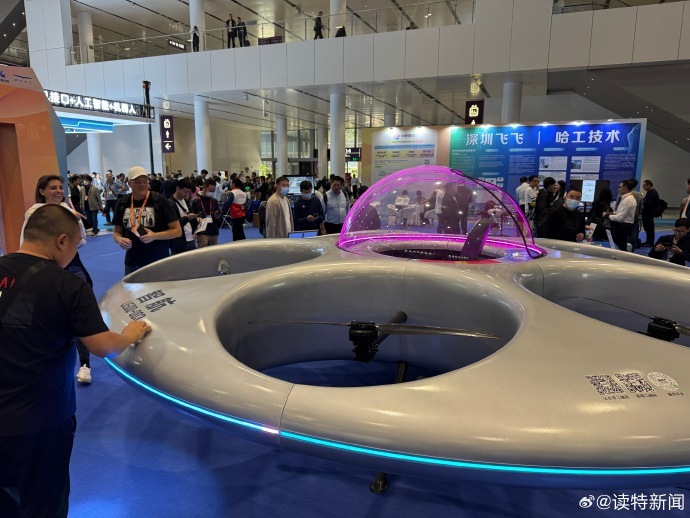 凤凰网科技讯 11月14日,据深圳特区报消息,全球首款载人飞碟亮相本届高交会8号馆。据了解,这个飞碟是大型无人驾驶eVTOL航空器,为文旅体验场景提供专属服务。这款航空器外形酷似UFO,并配备了一体式玻璃座舱罩,确保了360度无死角的观景视野,允许旅客尽情欣赏大自然之美以及满天星辰。