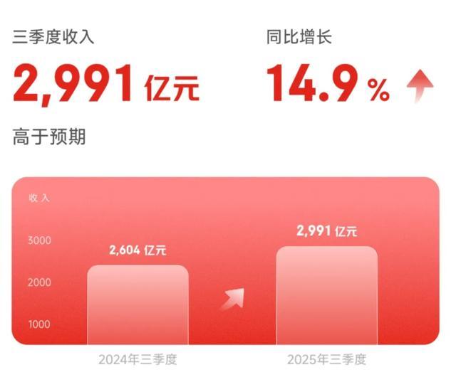 智东西11月14日报道,昨日晚间,京东公布了其2025年Q3财报。2025年第三季度,京东总净营收达人民币2991亿元,同比增长14.9%。2025年前三季度,京东总净营收达9568亿元,同比增长17.9%。