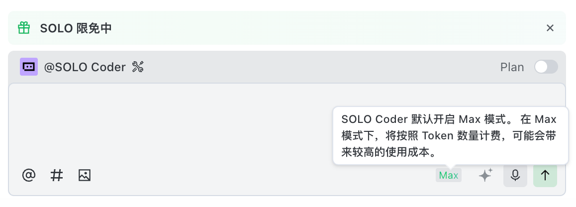 和 TRAE 2.0 会显示当前使用的模型不同,在 Claude 彻底断供之后,TRAE 3.0 在 SOLO 模式下,只会显示 Max 模型,且不能自定义选择模型。