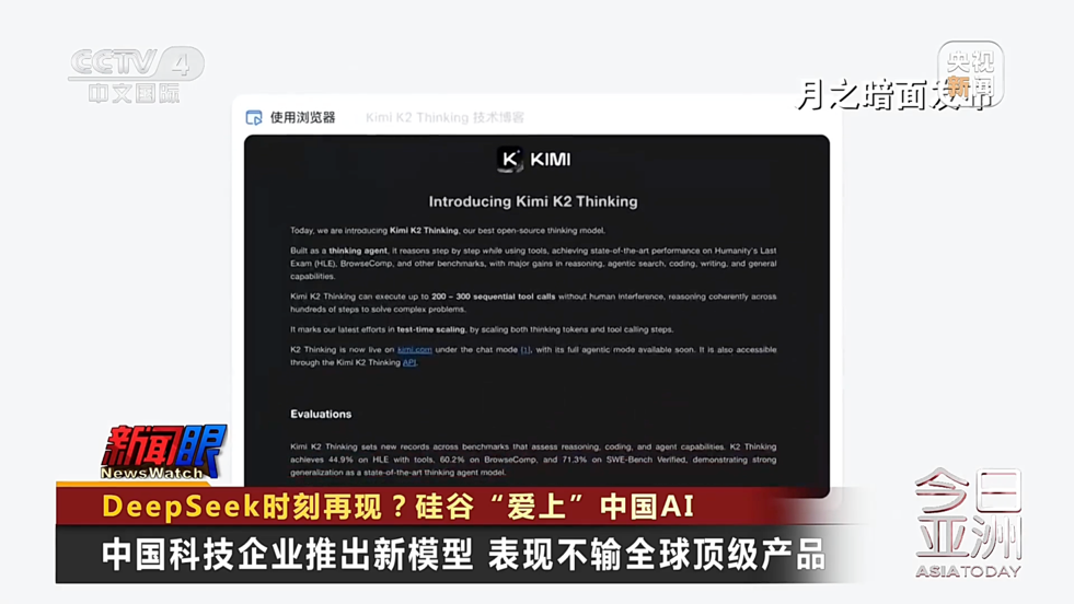 美国CNBC电视台主持人迪尔德丽·博萨表示,来自中国初创公司月之暗面开源的模型Kimi K2 Thinking在多项基准测试中表现优异,据称训练成本却不足500万美元,这听来像是个熟悉的故事,完全符合自今年初以来。中国人工智能领域逐渐显现的发展脉络持续以远低于同行的预算不断缩小性能差距。