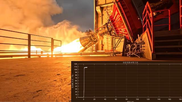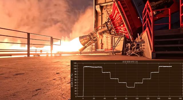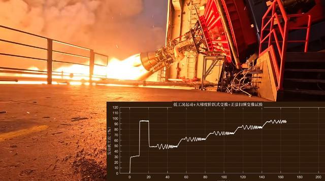 突破二:依托改进的控制时序与先进算法,发动机实现了从 32% 极低工况平稳起动后,单次阶跃至额定推力的大幅度变推,单次推力调节幅度超过额定推力 60%,响应时间控制在 0.5 秒以内,展现出卓越的动态响应能力。