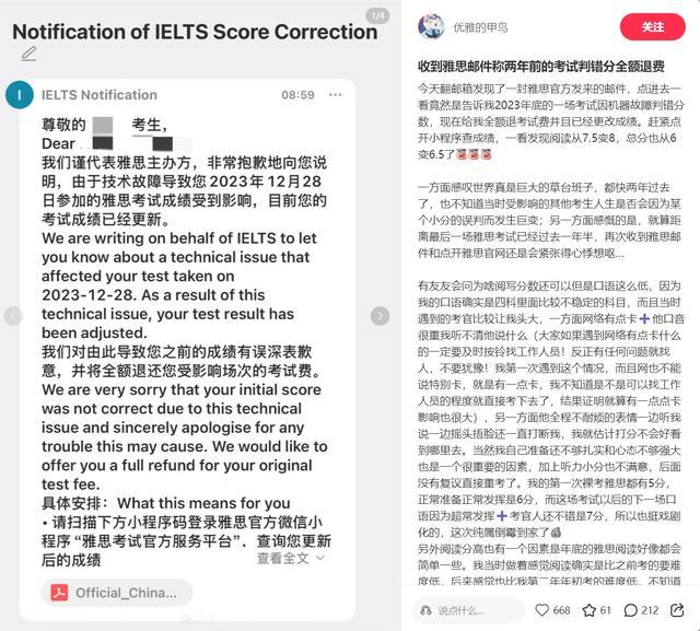 IT之家 11 月 18 日消息,国际英语语言测试系统雅思的主办方日前向部分考生发送邮件,表示由于技术故障导致考生参加的某次雅思考试成绩受到影响,目前考试成绩已经更新,同时对由此导致成绩有误深表歉意,并将全额退还受影响场次的考试费。