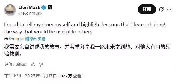 IT之家注意到,面对艾萨克森的批评,马斯克并未直接反驳,而是表示其本人将亲自撰写自传。他指出,此举旨在“分享一路走来学到的、对他人有用的经验教训”。