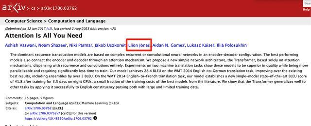 Sakana AI联合创始人兼CTO里昂·琼斯先后在Youtube、谷歌担任软件工程师,在谷歌任职期间他与另七位作者共同推出了Attention Is All You Need这一革命性论文。