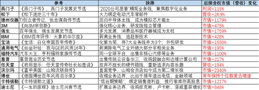 又如我们多次提及的丰田,在全球石油危机爆发、车企纷纷寻求新业务以弥补汽车行业增速放缓之际,通用收购休斯顿飞机,福特涉足金融,最终均遭反噬。而专注于生产工艺革新的丰田,反而成为全球汽车行业龙头。