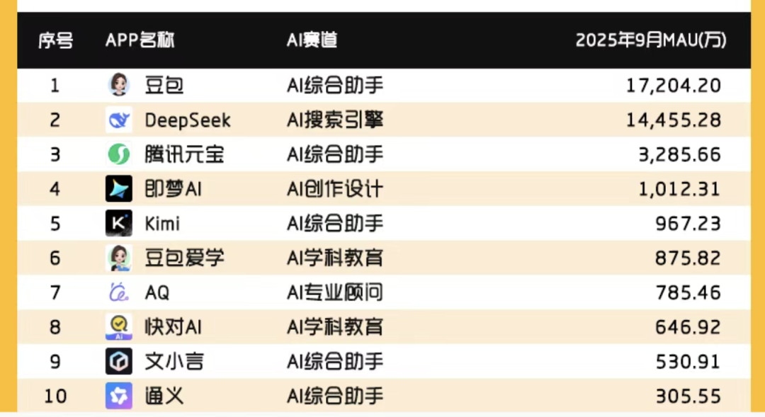 在AI上,百度入场很早,但能否笑到最后更重要。比如百度文小言,是百度To C的原生AI App ,上线几乎是最早的,但据Questmobile披露,其9月的月活用户刚刚超过500万,在 原生AI App月活用户排行榜上名列第九,与字节旗下豆包(1.7亿月活)、DeepSeek(1.4亿月活)、腾讯旗下元宝(3285万月活)等,均相距甚远。