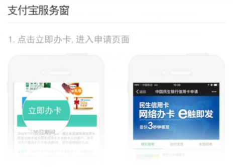不过所有银行都支持这个功能申办信用卡的,目前也仅有民生银行两家银行的信用卡可通过该渠道申请。