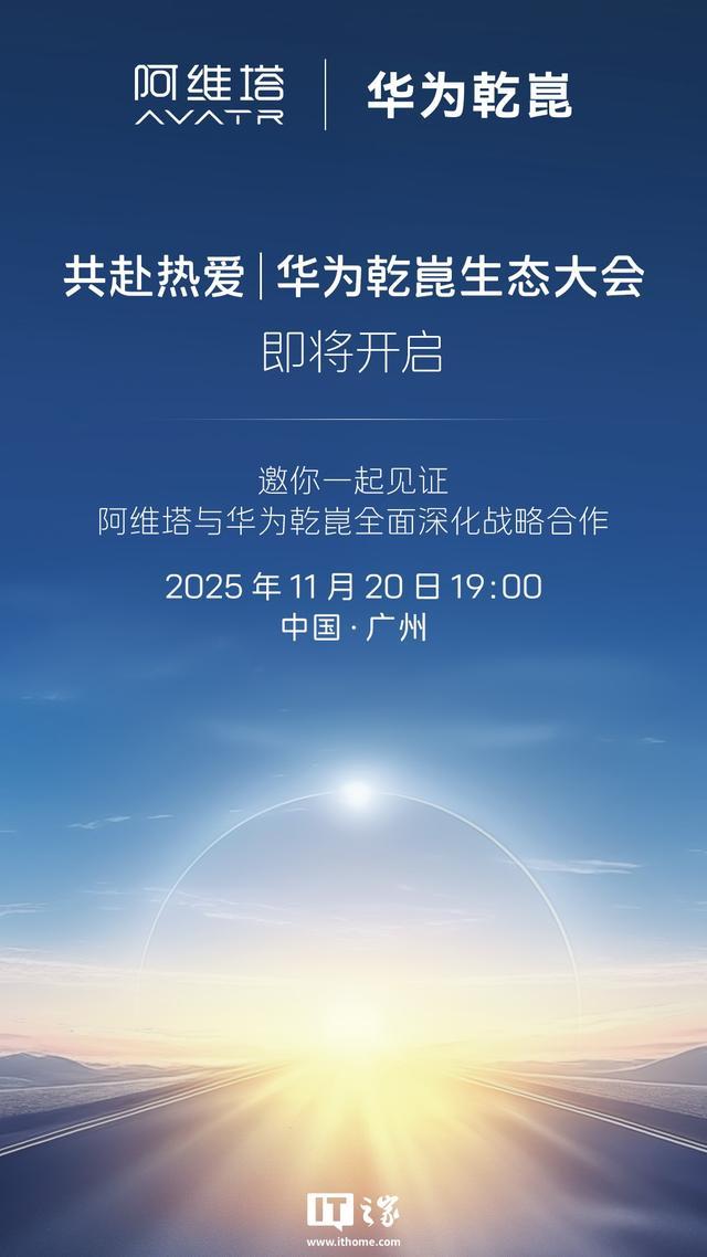 IT之家 11 月 20 日消息,阿维塔官方今日宣布,将与华为乾崑全面深化战略合作,更多信息将在今晚 19:00 的华为乾崑生态大会上公布。