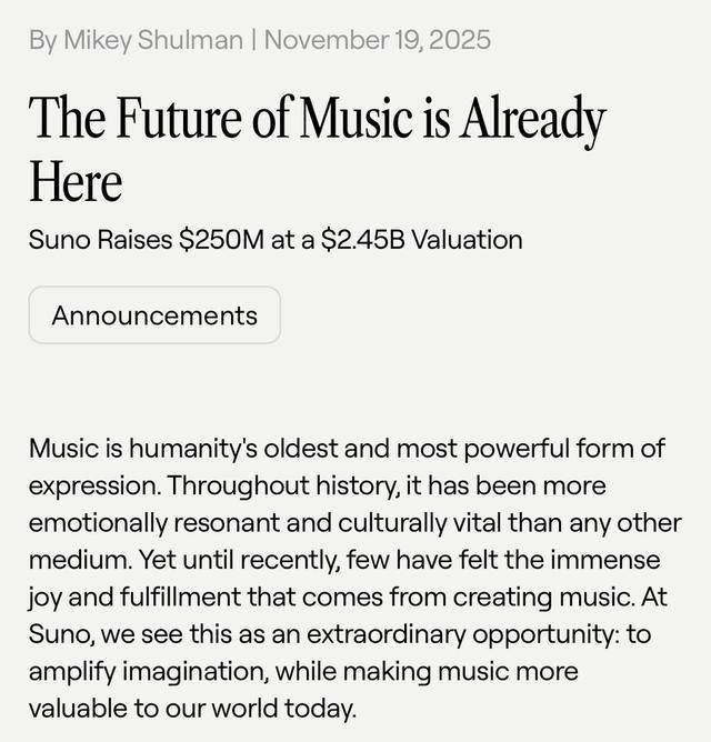 Suno官宣博客(来源:Suno)
