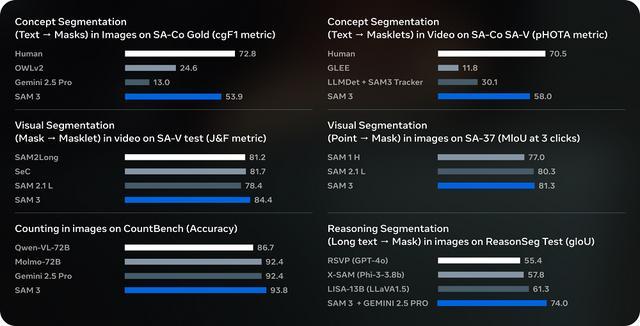 如果说SAM 3D系列模型代表着Meta在三维视觉重建领域的首次突破,那么SAM 3对Meta在2D图像分割领域探索的延续。