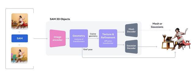 智东西11月20日报道,今天,Meta宣布推出一个全新的模型家族SAM 3D,并发布两款3D模型,分别为用于物体和场景重建的SAM 3D Objects和用于人体和体型估计的SAM 3D Body。