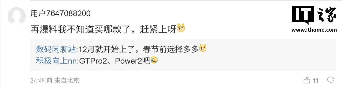 结合博主评论区回复,这几台手机将在 12 月开始陆续发布,同时根据博主文中暗示和评论区猜测,预计这几台机器中有荣耀 X80、Power 2、GT2 等。