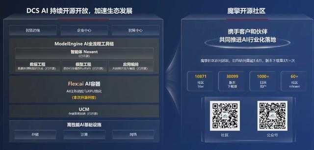 Flex:ai将在发布后开源在魔擎社区中,与华为此前开源的Nexent智能体框架、AppEngine应用编排、DataMate数据工程、UCM推理记忆数据管理器等AI工具共同组成了完整的ModelEngine开源生态。